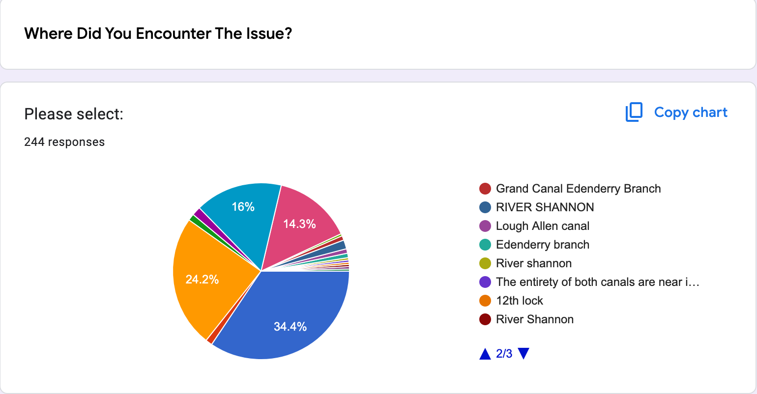 The following chart(s) data corresponds with the order of the questions you encounter in the Nav-Watch Survey. There’s a wealth of information here which can only be useful for WI engineers as they plan works. Do send us your feedback as well as your logs, it’s all useful information, e.g. one boater reported back in late May 2025 that issues they had encountered on their outbound journey along the Barrow had almost all been resolved when they returned a couple of months later.