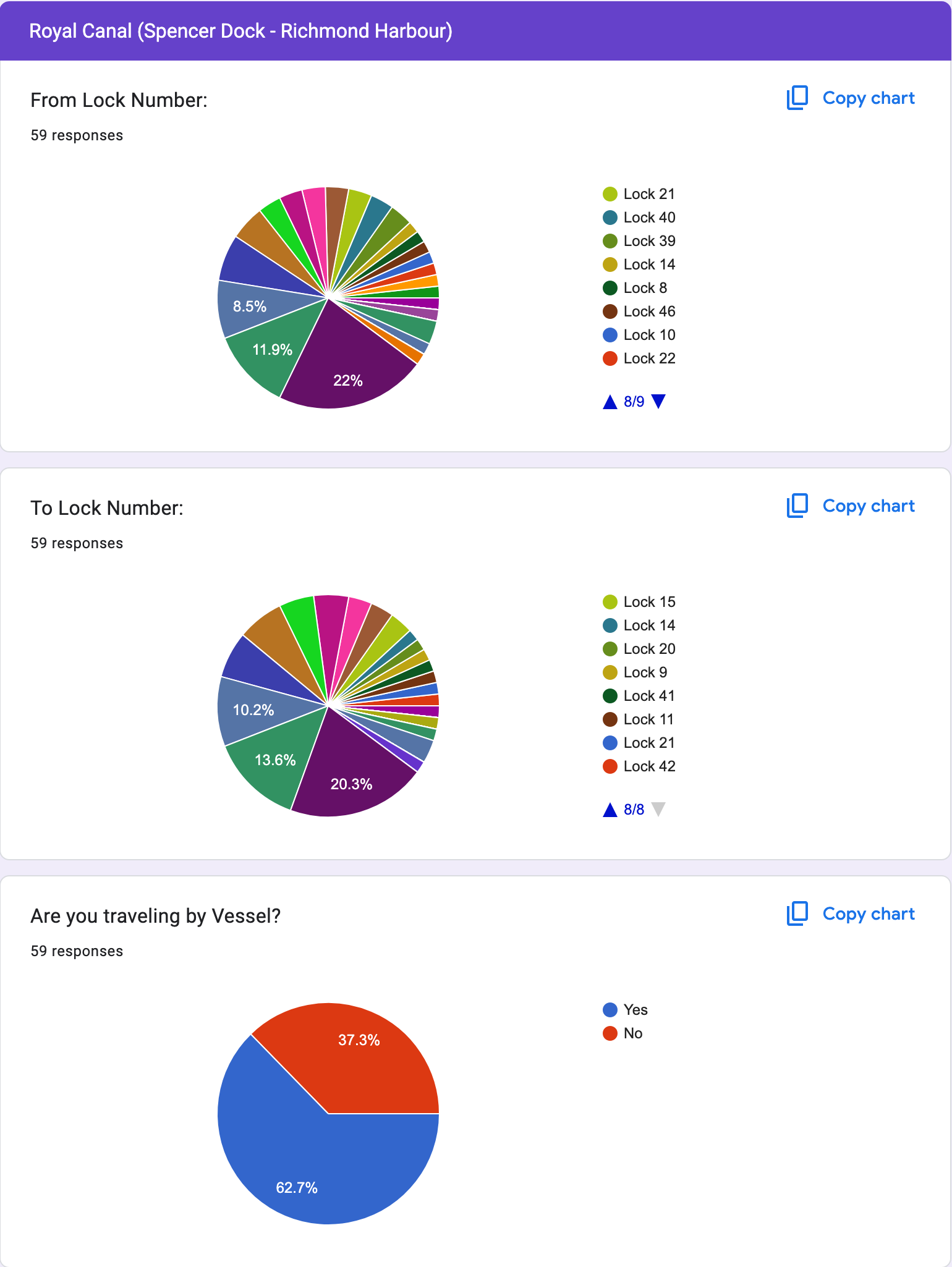 The following chart(s) data corresponds with the order of the questions you encounter in the Nav-Watch Survey. There’s a wealth of information here which can only be useful for WI engineers as they plan works. Do send us your feedback as well as your logs, it’s all useful information, e.g. one boater reported back in late May 2025 that issues they had encountered on their outbound journey along the Barrow had almost all been resolved when they returned a couple of months later.
