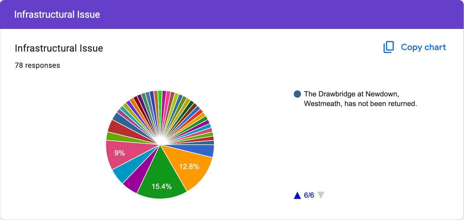Your logs continue to build up to an impressive table of issues and observations. In May 2025 we shared our current logs with Waterways Ireland. In accordance with good GDPR practice, all of your personal details were removed from the data which ensures your anonymity, and we hope, encourages you the waterway and greenway users to keep on logging issues.