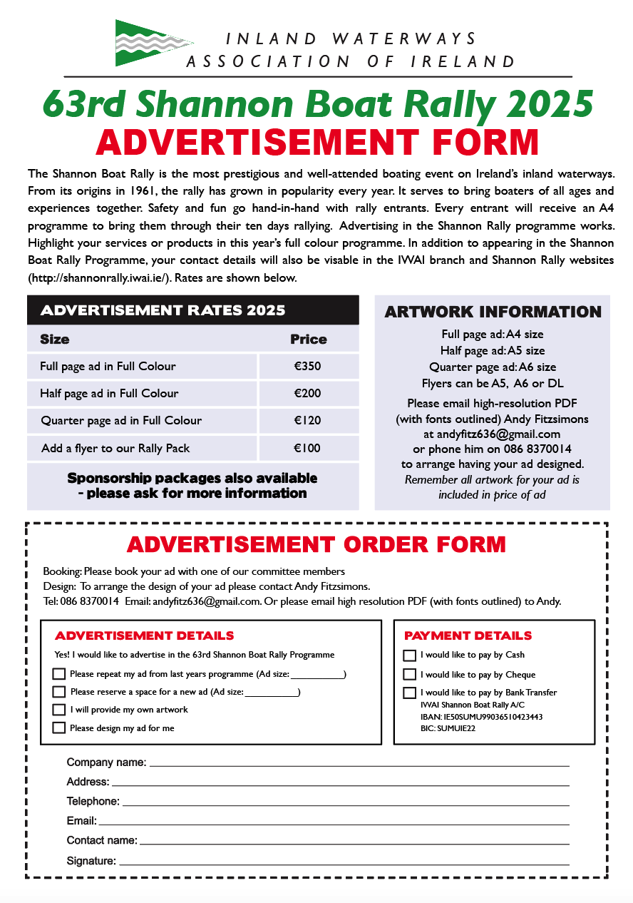 IWAI 63rd Shannon Boat Rally 2025 advertisers proudly listed below.